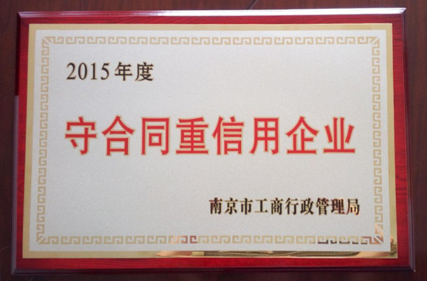 近日,接到南京市企業(yè)信用管理協(xié)會(huì)通知,我公司正式通過(guò)2015年度市級(jí)“守合同重信用”企業(yè)的認(rèn)定,并予授牌和頒發(fā)證書(shū)。